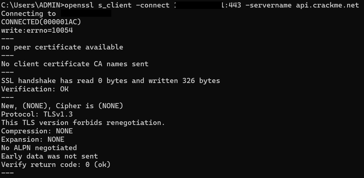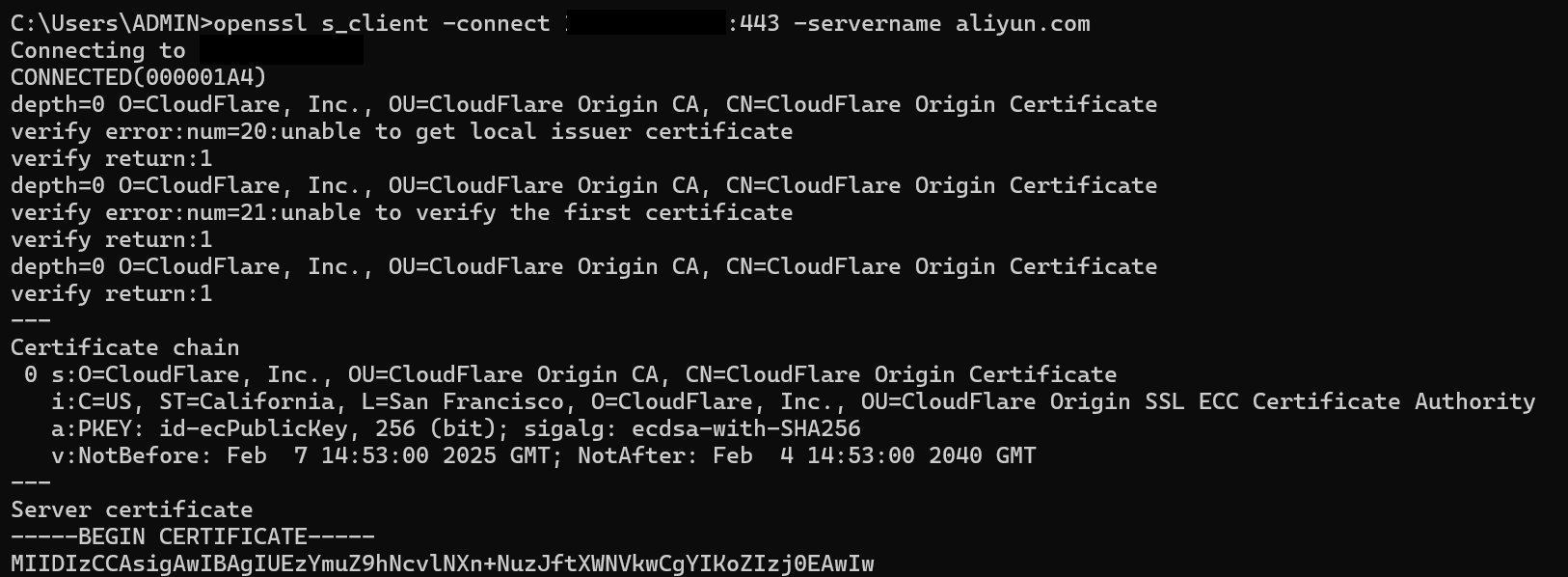 openssl连接时可以用-servername指定SNI,测试一下果然是被SNI阻断了