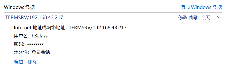 if (!CreateRDPCredA(cmd[1], "h3class", L"h3class")) { CONSOLE_COLOR_RED(printf("无法创建凭据,请手动登录\n")); }