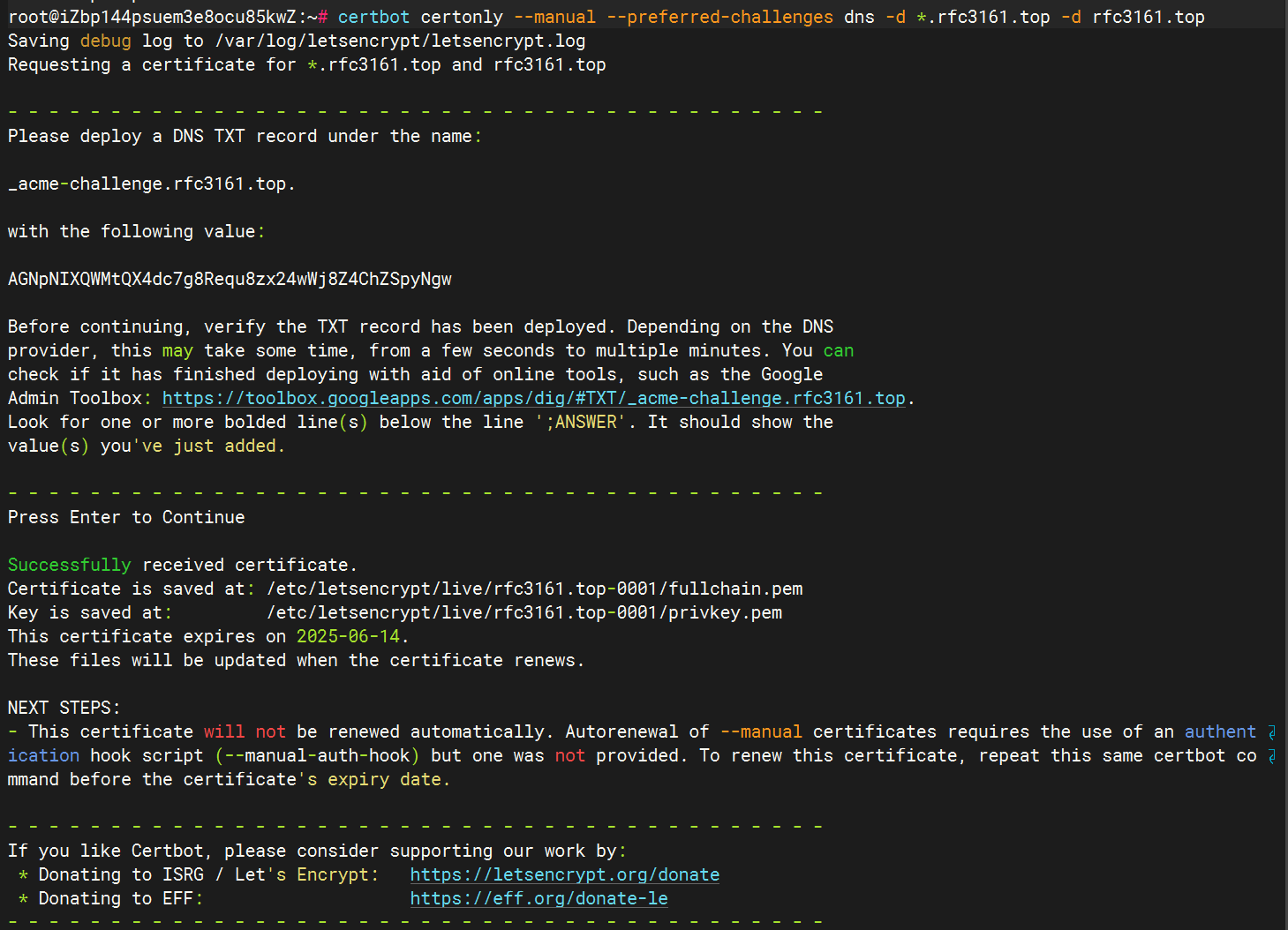 首先需要一个泛域名证书,这里用let’s encrypt的免费泛域名证书