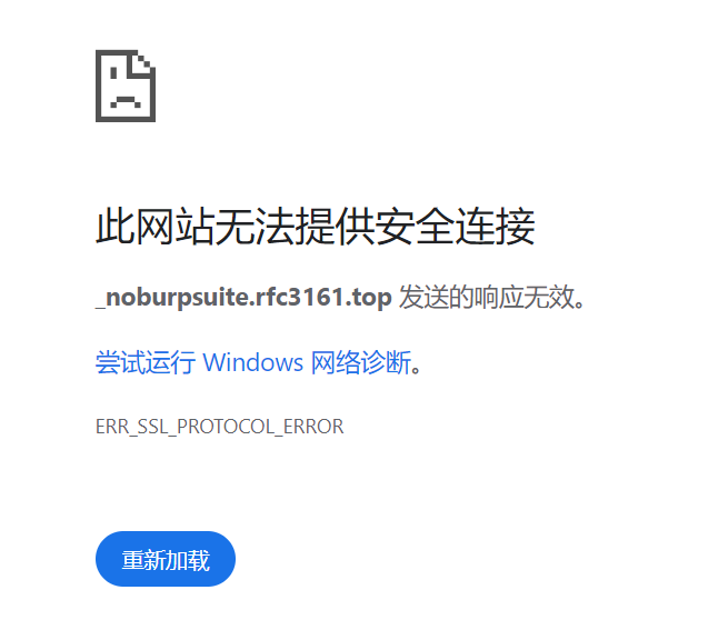 而BurpSuite用户访问时会出现ERR_SSL_PROTOCOL_ERROR错误